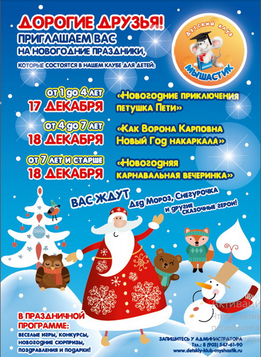 Приглашаем Вас на новогодние праздники.